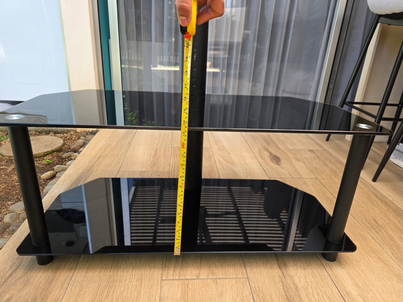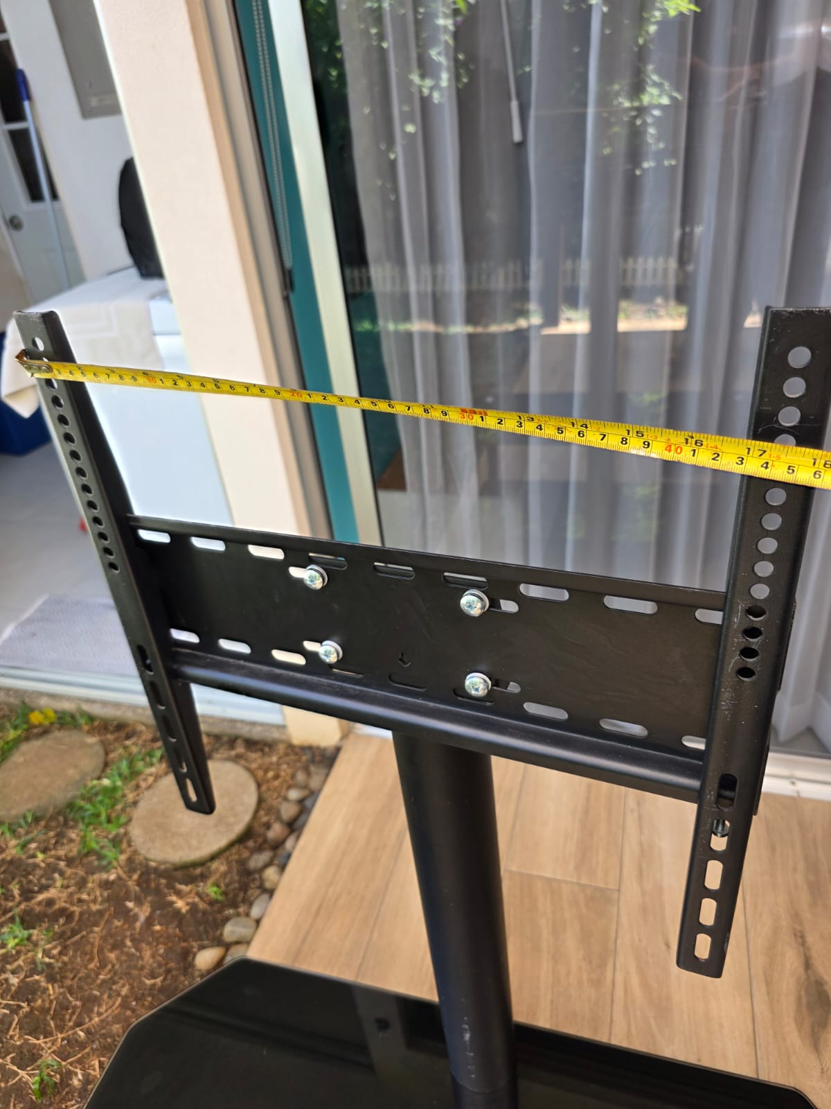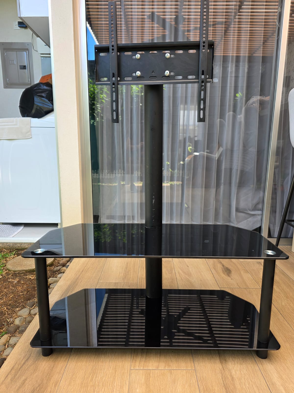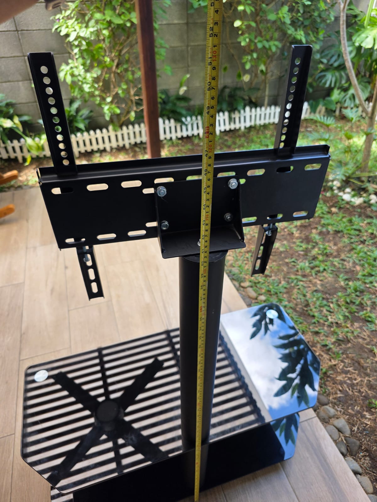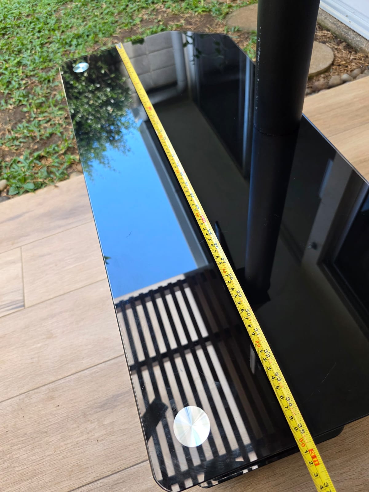 Usado, en buen estado, dos niveles, soporta pantalla de 32 a 48 pulgadas, medida aproximada del sobre de vidrio, en centímetros: 100largo x 40ancho, ver las fotos para otras medidas